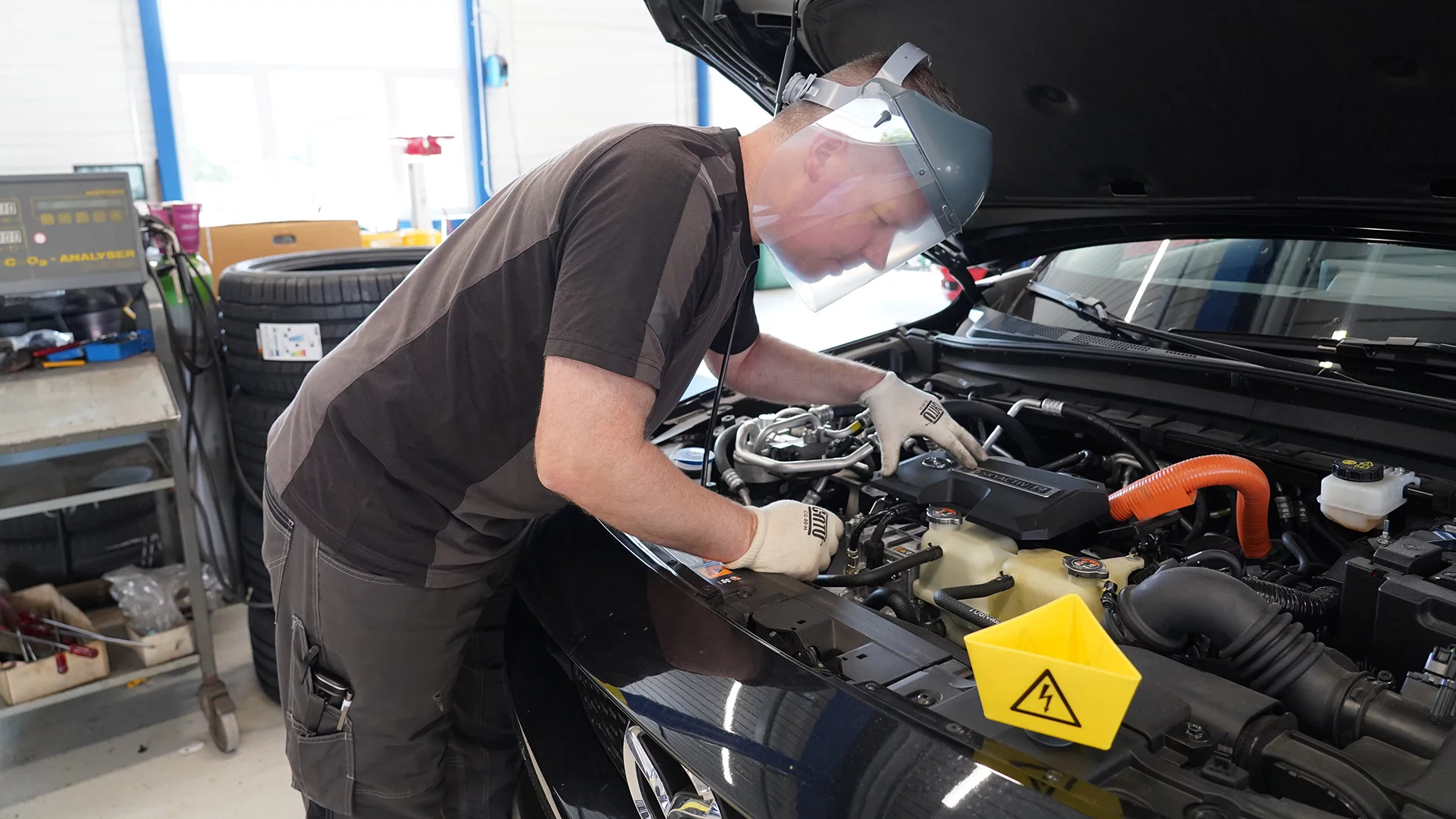 Investitionen sind ein gutes Stichwort. Was braucht es denn alles, um die Elektro-Reise in der Garage mit ihren acht Mitarbeitenden zu starten? «Bis jetzt halten sich neben den HV-Kursen die Kosten zum Glück noch in Grenzen. Wir haben uns schon mal ein Grund-Kit an Elektro-Werkzeugen, Absperrungen, Handschuhen und den speziellen Gesichtsschutz gekauft», verrät Andreas Hollenweger, der sich als Geschäftsführer um den Bereich Werkstatt & Kundendienst kümmert. Auch ein Baumwoll-Kittel sei wichtig, damit bei der Arbeit nicht plötzlich ein Lichtbogen entstehe. Um die Beschaffung weiterer Spezial-Tools wollen sie sich kümmern, sobald mehr elektrifizierte Modelle in die Werkstatt rollen.