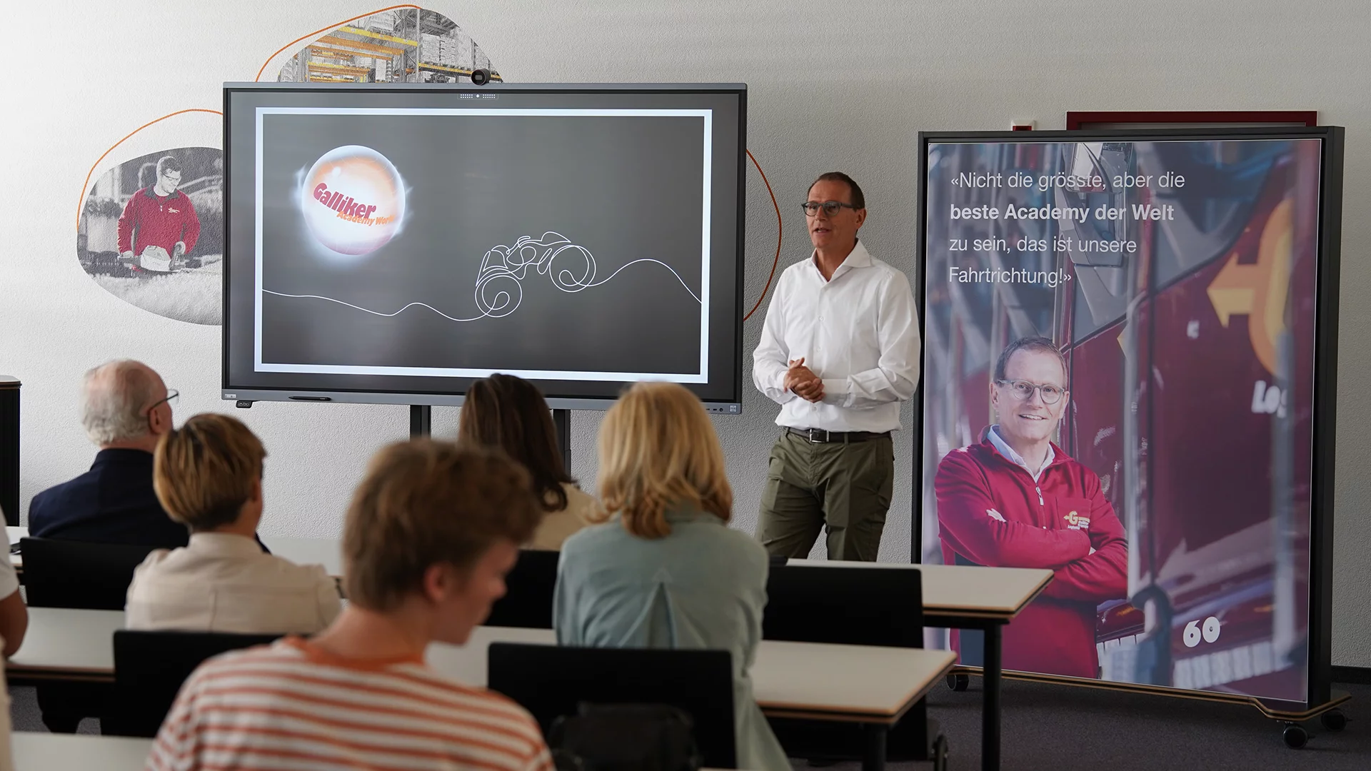 Der Grundstein für die Academy liegt schon fast 40 Jahre zurück. Damals hatte Peter Galliker senior mit dem Gedanken «Wir müssen immer genügend Chauffeure haben!» den Experten Paul Malzach vom Kanton abgeworben und die Chauffeurausbildung nach Altishofen gebracht. Aus der Fahrschule wurde eine umfassende Ausbildungsstätte, die nun Lehrberufen von Logistik, Transport und Informatik bis hin zu Fahrzeugtechnik und KV eine Heimat bietet. «Wir wollen bei Galliker auch in Zukunft den Menschen in den Mittepunkt stellen und gute, gefestigte Persönlichkeiten formen», verrät Pirmin Trachsel, HR-Leiter. «Wir wollen nicht die grösste, aber beste Academy der Welt sein – das ist unsere Fahrtrichtung. Und legen den Fokus auf einen inspirierten Nachwuchs.»