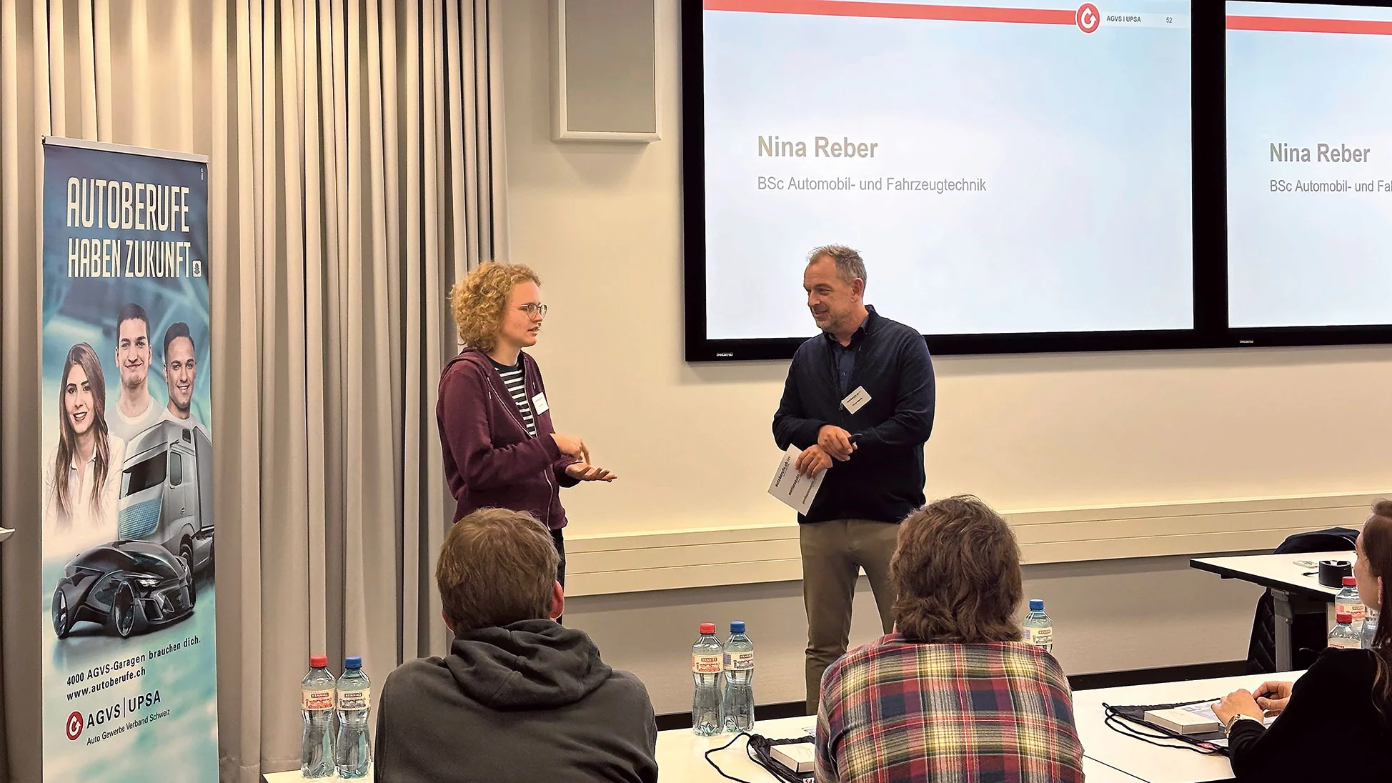 Die Teilnehmenden suchten nicht nur Informationen, sondern Orientierung: Was sind die nächsten Schritte nach der Lehre? Welche Weiterbildung passt? Wie entwickelt sich das Autogewerbe in Zeiten von Digitalisierung und neuen Antriebssystemen? Während rund einer Stunde führte Olivier Maeder, AGVS-Geschäftsleiter Bereich Bildung, durch den Abend und stellte die verschiedenen Weiterbildungsmöglichkeiten vor – von der Werkstattkoordination bis zum Automobil-Verkauf mit eidgenössischem Fachausweis.