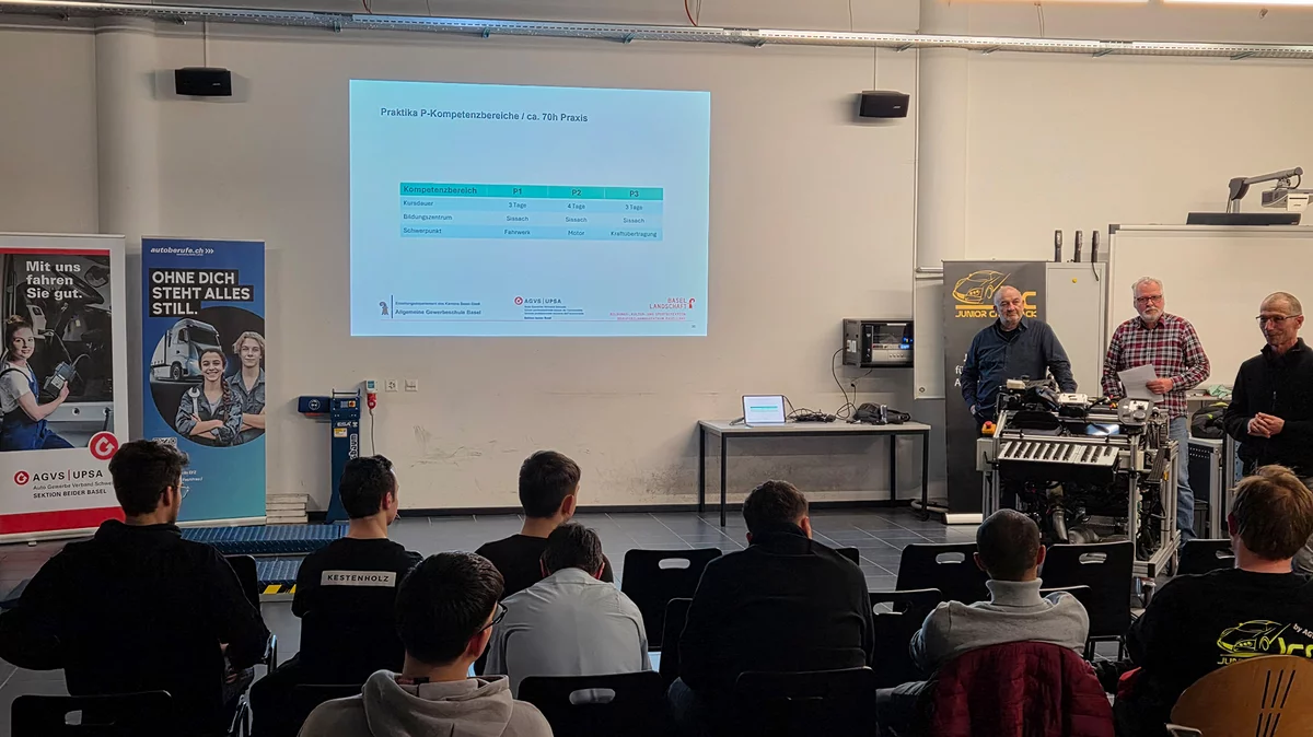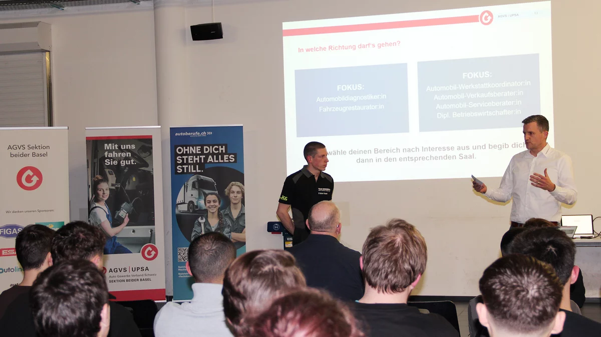 Der Anlass in Sissach BL bot einen kompakten Überblick über die vielfältigen Entwicklungsmöglichkeiten im Autogewerbe. Ob Weiterbildung im Bereich Diagnostik, eine Laufbahn im Kundendienst oder der Schritt in eine Führungsfunktion – die Branche bietet unterschiedlichste Karrierechancen.