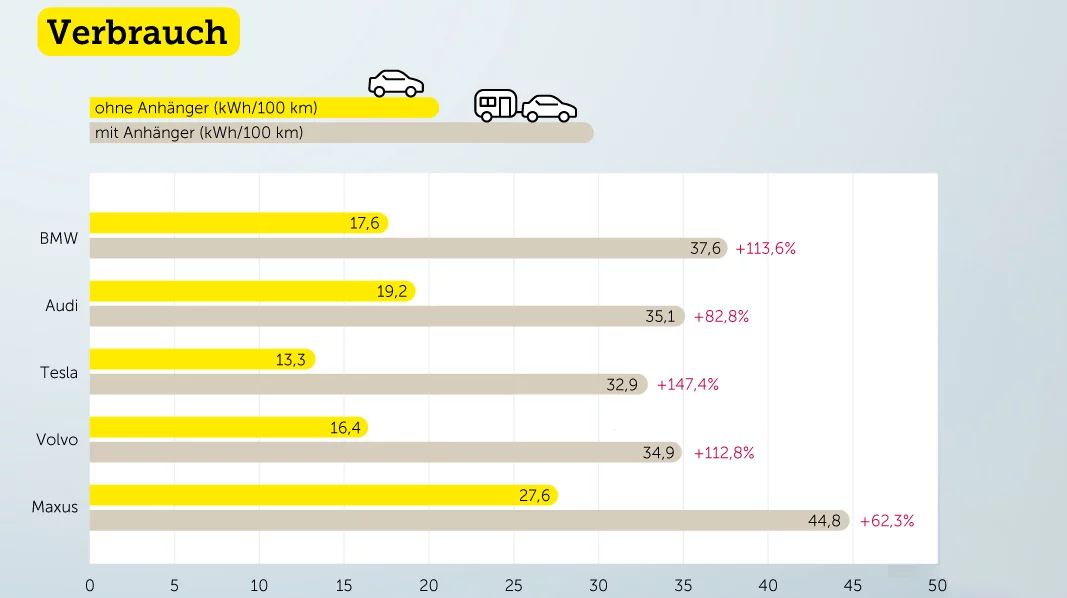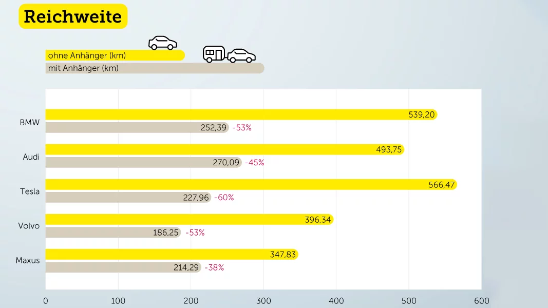 Mit schwerem Anhänger halbiert sich die Reichweite