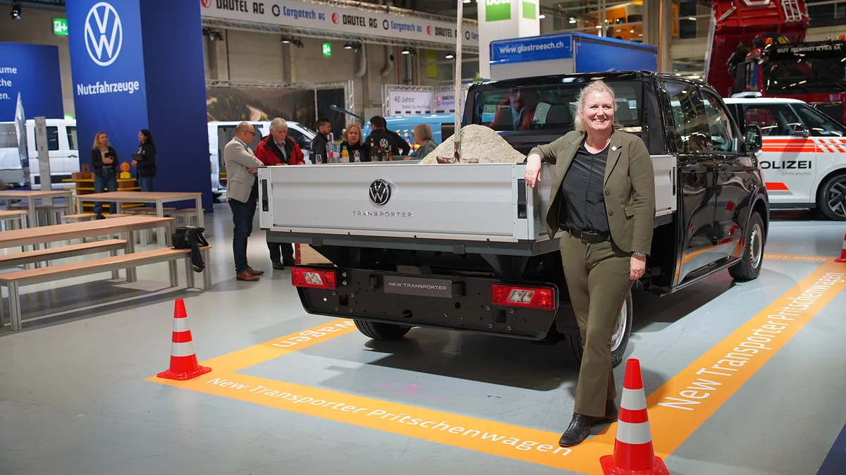 Bei der BF Import AG zeigte man nicht nur die Elektro-Varianten von BYD Trucks Switzerland, sondern mit der 510 PS starken Sattelzugmaschine Ford F-Max der zweiten Generation, dass Ford neben den leichten Nutzfahrzeugen wie E-Transit oder Tourneo Connect eben auch bei den schweren Jungs präsent sein will. Und bei VW Nutzfahrzeuge lancierte Markenchefin Nicol Fleissner den neuen Transporter-Pritschenwagen mit Doppelkabine gleich selbst. «Die Variante ist vor allem bei Gartenbaubetrieben sehr gefragt gewesen, und wir sind froh, sie nun wieder anbieten zu können», so Fleissner zum VW Transporter mit 4,2 m² Ladefläche, bis zu 1073 kg Nutzlast und 2,5 t Anhängelast, den es in zwei Dieselvarianten (110/150 PS) sowie drei Elektro-Versionen (136/218/286 PS) und auf Wunsch auch mit 4x4 gibt.