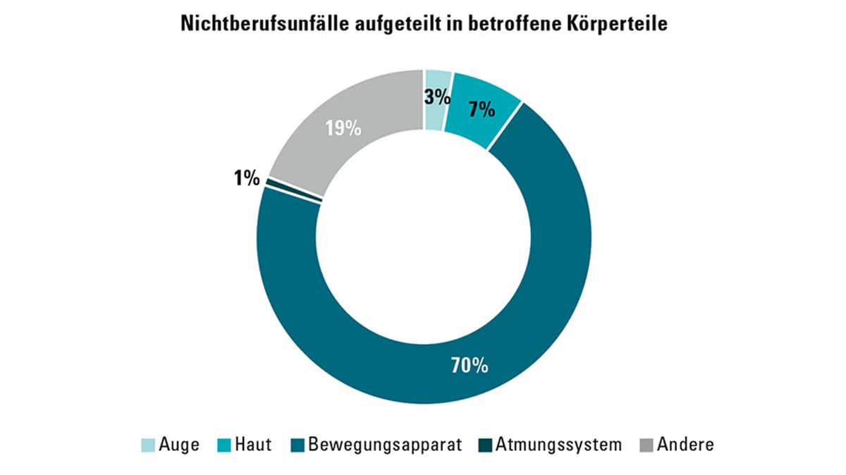 Die Häufigkeit von Nichtberufsunfällen, die ebenfalls zu erheblichen Ausfällen führen können, ist in den untersuchten Unternehmen besonders hoch. Die Umfrage zeigte auf, dass viele der gemeldeten Ausfälle durch sportliche Aktivitäten, private Unfälle oder Muskel-Skelett- Verletzungen bedingt sind. Betroffen war in 70 Prozent der Fälle der Bewegungsapparat, bei sieben Prozent die Haut, bei drei Prozent die Augen und bei 20 Prozent Anderes. Diese signifikante Belastung durch Nichtberufsunfälle weist darauf hin, dass Unternehmen in ihren Gesundheitsmanagementstrategien die Präventionsmassnahmen zur Vermeidung solcher Unfälle verstärken sollten. Für Unternehmen ergibt sich hier klarer Handlungsbedarf, insbesondere durch gezielte Massnahmen zur Vorbeugung gegen Muskel-Skelett-Verletzungen. Dies könnte etwa durch ergonomische Arbeitsplatzgestaltung, Schulungen und regelmässige Gesundheitschecks erfolgen.