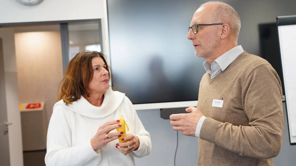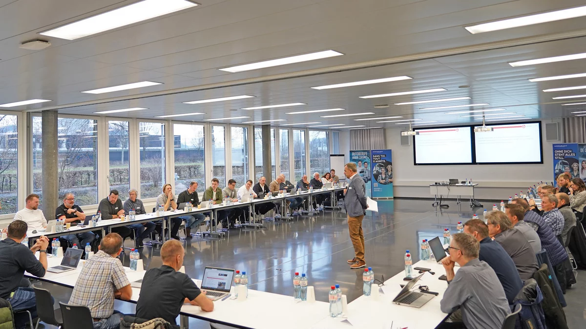 Manchmal sind Pausen so wichtig wie Programme: hier Fachgespräche, dort eine Visitenkarte – an der Erfa-Tagung ist Netzwerken ebenso ein Schlüssel zur Klärung offener Bildungsfragen wie die Referate. Mitte Dezember trafen sich knapp 50 Bildungsverantwortliche der Auto- und der Nutzfahrzeugimporteure mit dem AGVS zum Erfahrungsaustausch (Erfa). Quasi ein Klassentreffen der Bildungsakteure. Ebenfalls teils dabei waren Verbände wie Auto-Schweiz oder Bildungspartner wie Electrosuisse.