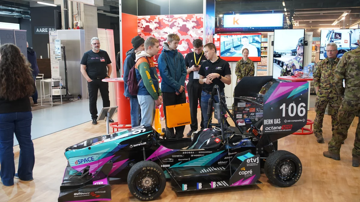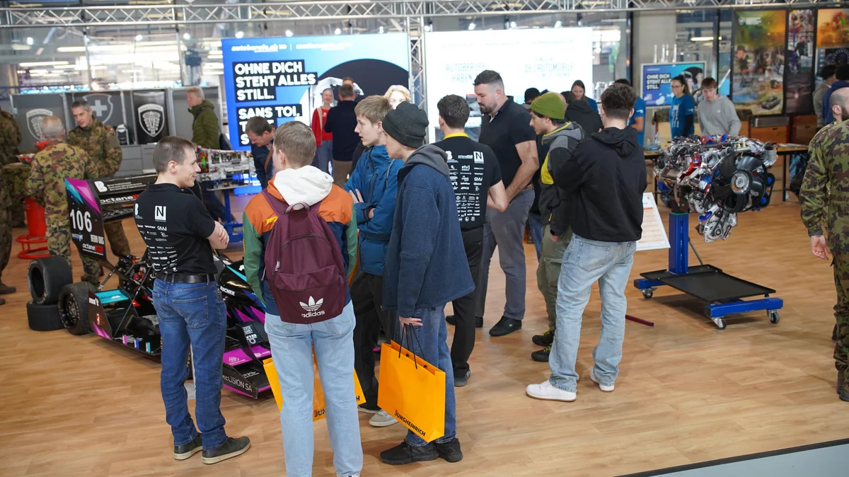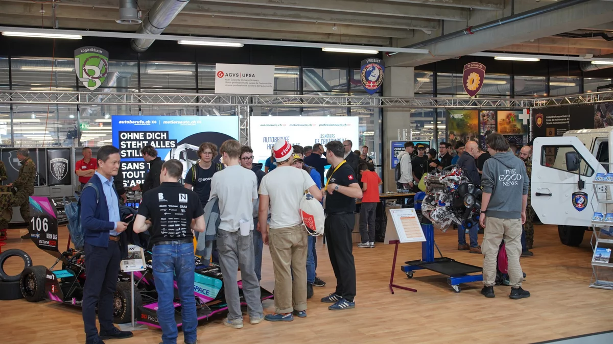 Auf dem gemeinsamen Stand des AGVS und der Armee war während aller vier Messetage immer etwas los. Der 130 km/h schnelle, elektrische Formel-Racer «Sajetta» der Studierenden des Bern Racing Team wurde ebenso interessiert beäugt wie der K-Force-Wagen, bei dem spätestens beim Öffnen oder Schliessen der schweren Türen klar wurde, was es bedeutet, wenn ein Fahrzeug gepanzert ist. An der viertägigen Fachmesse in Bern wurde bewusst sehr viel auf Interaktion gesetzt – ob beim Fahrsimulator der Armee, beim Abtauchen in andere Werkstattwelten mit der VR-Brille, bei der imposanten Bremswand, bei der 10,5 bar Abschaltdruck nötig waren, oder beim gemeinsamen Lösen technischer Probleme. Und dank der beiden Standverantwortlichen, Arjeta Suljemani und Martina Frieden, sowie dem Standpersonal übrigens mehrheitlich bestehend aus Lernenden wurden die Besucher:innen stets bestens betreut.