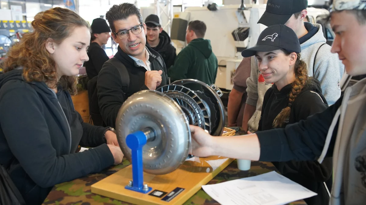 Äusserst erfreulich war nicht nur die optische Präsenz, sondern auch das Interesse der Jugendlichen am Angebot des AGVS selbst. Über 100 Schülerinnen und Schüler hatten sich mit ihren Lehrer:innen angemeldet und absolvierten den sogenannten technischen Rundgang. Ausgerüstet mit einem Fragebogen machten sich die Nachwuchskräfte auf zu den verschiedenen Messehighlights und erfuhren dabei viel Wissenswertes zu den einzelnen Innovationen an der Transport.ch. So gab es wichtige Hintergrundinformationen etwa am imposanten Stand der Einkaufsorganisation für das Auto- und Motorfahrzeuggewerbe ESA, wo man mehr zur speziellen Texa-Diagnoseschnittstelle für LKW erfahren konnte, oder auch, wieso ein Ölwechsel an einem ZF-Automatikgetriebe auch ausserhalb der vom Fahrzeughersteller vorgeschriebenen Zeiträume sinnvoll sein kann. «Eine aktuelle Studie hat gezeigt, dass es für die junge Generation entscheidend ist, dass Communities und Erlebnisse gebildet werden – und man sie mit gemeinsamen Aktionen abholen sollte», erläuterte Olivier Maeder. «Und wo geht so etwas besser als an der Transport.ch, dem Nutzfahrzeug Branchentreffpunkt? Darum haben wir auch den technischen Rundgang lanciert, bei dem die Jugendlichen gemeinsam auf Entdeckungstour gehen können und als Belohnung am Schluss von uns auch eine Powerbank erhalten.»