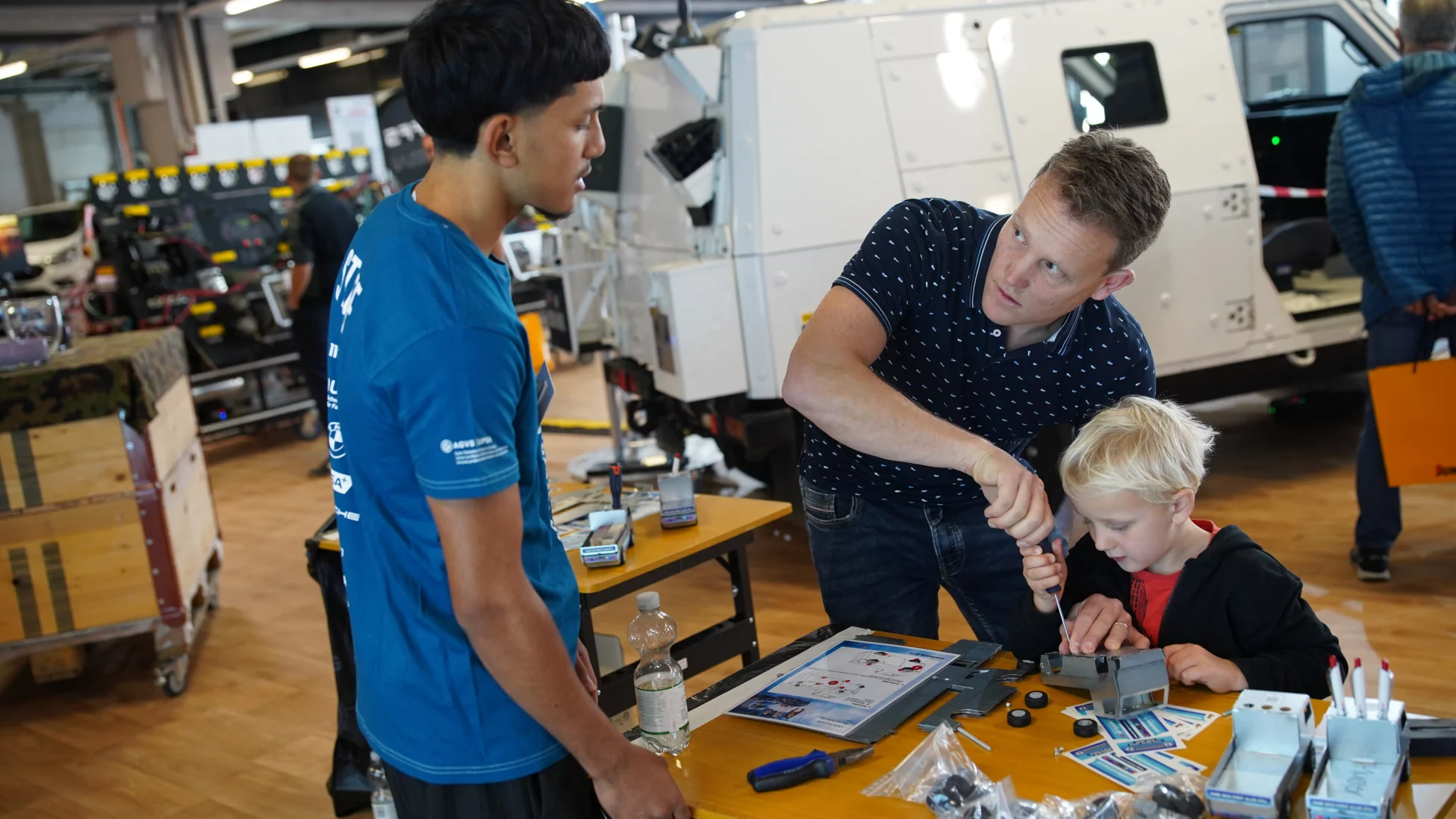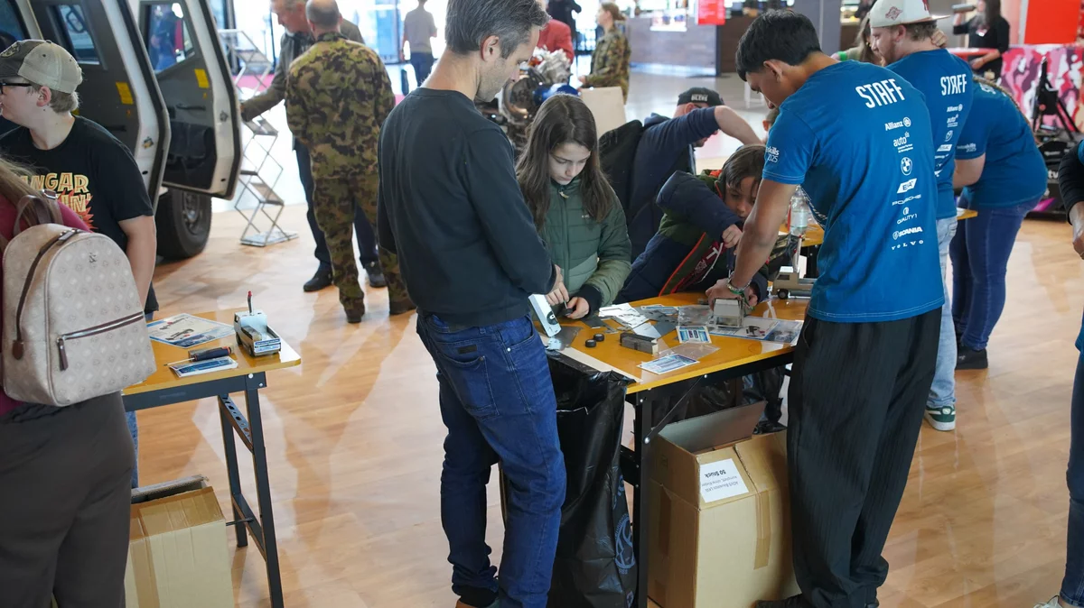 Selbstverständlich konnten beim AGVS auch wieder die beliebten Modelllastwagen aus Metall zusammengesetzt und dabei gleich handwerkliches Geschick bewiesen werden. Und doch war dieses Mal etwas anders! Denn die kleinen LKW hatten nicht nur ein neues Räderset und können jetzt auch als Stifthalter dienen, sondern es gab neu ein spezielles Kleberset für sie. Neben den Scheinwerfern prangte nun gut sichtbar der Slogan «Ohne dich steht alles still.» auf den Wägelchen und machte damit deutlich, wie wichtig die Transportbranche und ihre Fachkräfte für die Schweiz sind. «Wir sind dieses Jahr sehr präsent an der Messe», meint Olivier Maeder, AGVS-Geschäftsleitung Bereich Bildung, sichtlich zufrieden. Die Idee zu einem gemeinsamen Auftritt zur Nachwuchsförderung der Nutzfahrzeugberufe hatte ihren Ursprung übrigens an der letzten Transport.ch 2023 und kam dank der Unterstützung einer breiten Allianz nun voll zum Tragen.