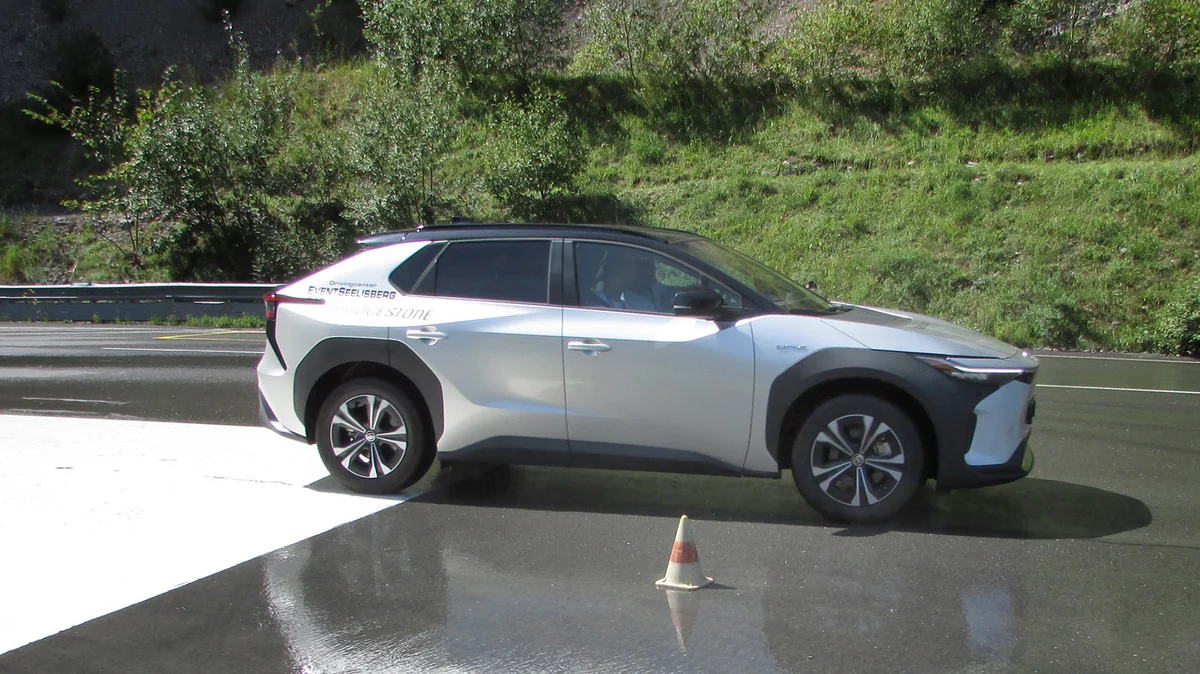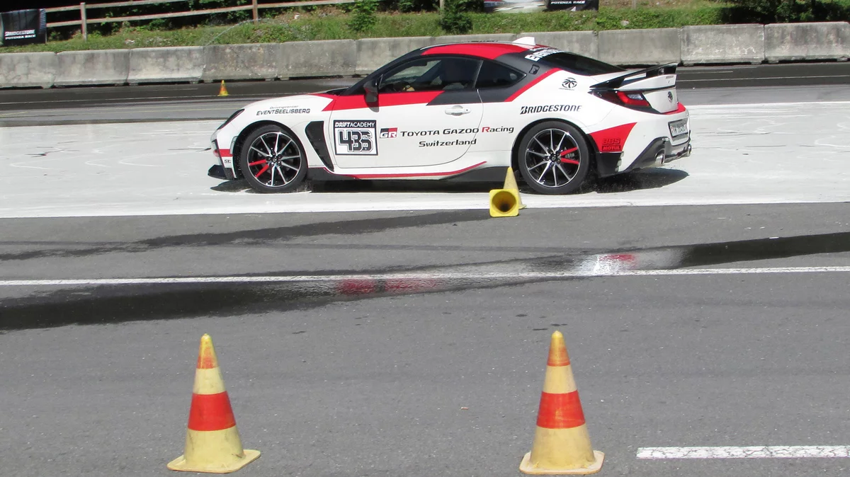Den Event-Teilnehmern führte das Bridgestone Team in Seelisberg solche allfälligen Unzulänglichkeiten spürbar vor Augen. Im Toyota GT86 waren die Unterschiede beim Fahrverhalten auszumachen, die sich durch unterschiedlich befüllte Reifen auf dem Slalomkurs und auf der bewässerten Gleitfläche zeigen. Keine einfache Aufgabe, manchmal selbst für die Reifenspezialisten, die unterschiedlichen Reifendrücke auf der Fahrt deutlich zu erkennen. Das bedeutet aber auch, dass regelmässige Kontrolle umso wichtiger ist. Leichter zu erkennen waren Grip-Unterschiede beim Nasshandling mit unterschiedlichen Profiltiefen. Erfahrbar waren diese auf dem Testparcours mit vier Toyota bZ4X. Aquaplaning tritt bei stärker verschlissenem Profil deutlich früher auf, und man weiss: Dann geht es in der Regel nur noch geradeaus.