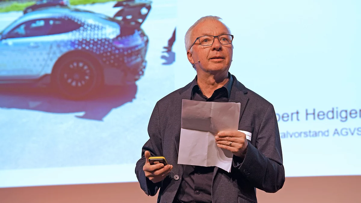 Dans son discours de bienvenue, Charles-Albert Hediger, membre du comité central de l'UPSA, a clairement montré à quel point le quotidien dans un garage est varié, mais aussi à quel point les défis sont nombreux. Le garagiste Mercedes valaisan a montré, outre de magnifiques véhicules anciens et des supercars telles que la 300 SL à portes papillon ou la Mercedes AMG-One, une photo d'accident. « Un client a percuté cinq de nos voitures d’occasion », a déclaré M. Hediger. « Toutes en vente – à l'assurance », a-t-il ajouté malicieusement. Avec sa série de photos, il a clairement fait comprendre aux diplômés : « Quelle que soit votre formation, vous devrez également faire face à de telles situations exceptionnelles dans votre quotidien. Il est important non seulement que vous disposiez d'une bonne base pour pouvoir assumer des responsabilités, mais aussi que vous le fassiez avec enthousiasme ! »