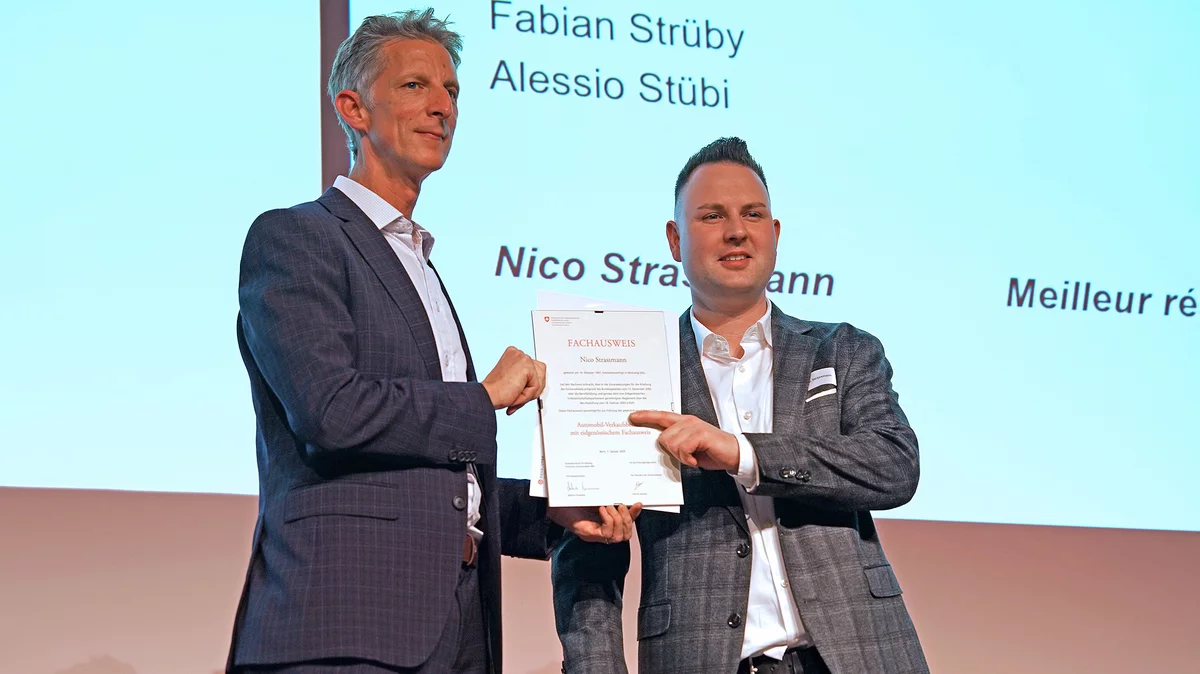 Particulièrement réjouissant : à Safenwil, 22 gestionnaires d'entreprise ont reçu leur diplôme. « Ils sont les gestionnaires des relations dans un garage, ils doivent sentir le pouls, savoir quels leviers actionner. Le diplôme en gestion d'entreprise est la classe reine de la formation dans notre secteur », a expliqué Martin Bächtold, président de la commission d'assurance qualité pour les gestionnaires d'entreprise diplômés de la branche automobile. Et s'adressant à tous les nouveaux diplômés en tant que conseillers de vente automobile, conseillers de service automobile et restaurateurs de véhicules, il a déclaré : « Si vous vous ennuyez déjà, vous savez ce que cela signifie d'investir deux ans dans une formation et d'atteindre le niveau supérieur. Vous n'avez jamais été aussi bien préparés qu'aujourd'hui pour franchir la prochaine étape avec la formation continue en gestion d'entreprise. »