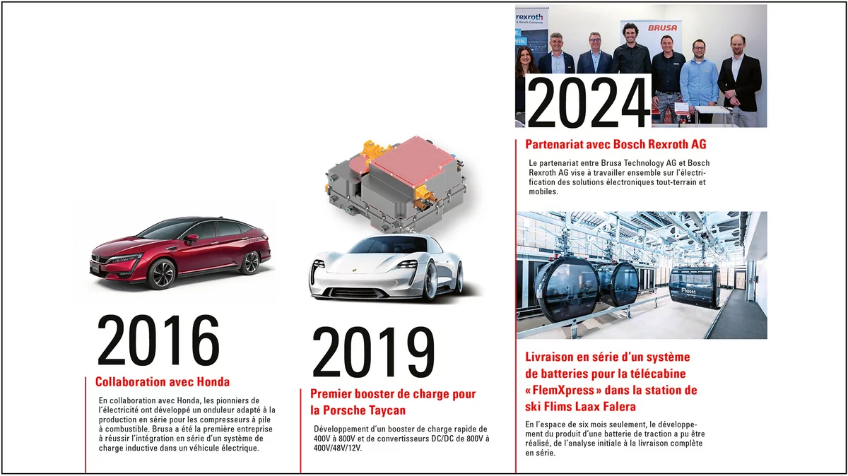 Aujourd’hui, Pascal Haltner est vice-président de Brusa Technology AG, qui a été créée en 2023 comme spin-off de Brusa Elektronik AG. « Ce qui me motive tous les jours, c’est que chez Brusa, nous travaillons à des solutions clients pertinentes qui font avancer la société de manière durable », explique-t-il. Les produits de Brusa ne trouvent pas seulement leur place dans l’industrie automobile classique, mais aussi dans les véhicules nautiques, les applications industrielles et les projets aéronautiques. en 2024, un système de batteries pour cabines autonomes a été livré et sera utilisé dans le « FlemXpress » du domaine skiable de Flims Laax Falera.