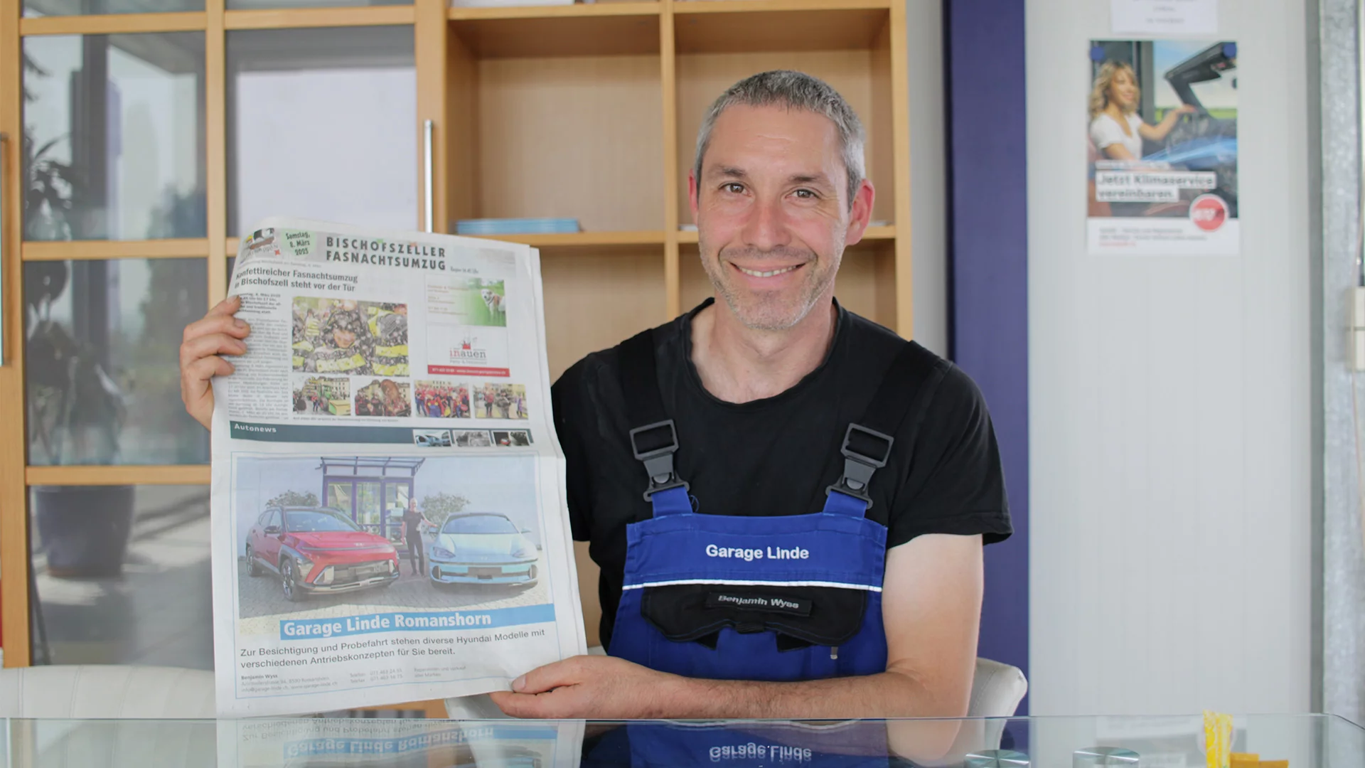 Le chef de garage B. Wyss, aujourd’hui âgé de 47 ans, a intégré le garage Linde, qui représentait alors encore la marque sud-coréenne Hyundai, directement après son apprentissage. Mais en 2016, cette représentation a pris fin. « Nous n’avons pas abandonné volontairement la représentation de la marque », relate B. Wyss, « c’est plutôt l’importateur qui y a mis un terme, après 25 ans de collaboration ». À la même période, les anciens propriétaires ont décidé de se retirer. B. Wyss a pris le relais sans savoir comment les choses allaient évoluer. On le voit : les choses ont continué et se sont bien passées. Le Garage Linde prospère encore aujourd’hui. Dans l’atelier, l’équipe est composée de trois personnes : deux mécaniciens en maintenance d’automobiles et un apprenti. Au bureau, Susanne Blaser, l’épouse de l’ancien chef, s’occupe à mitemps de la comptabilité.