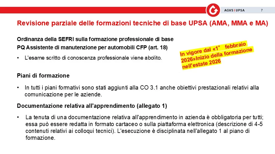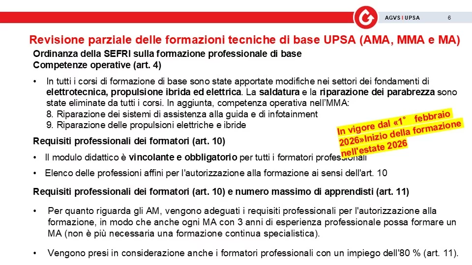 Il 1° febbraio 2026 entreranno in vigore le revisioni della formazione di base, che saranno applicate a partire dall'inizio dell'apprendistato nell'estate 2026. Esse riguardano tutte le aziende di formazione nel settore auto e sono tra i temi formativi centrali del prossimo anno.