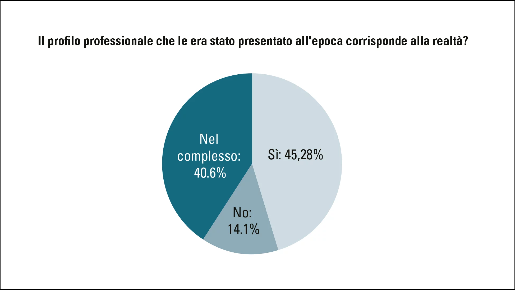 La grande maggioranza degli intervistati (45%) ritiene che l'immagine professionale trasmessa prima della formazione corrisponda alla realtà. Un altro 41% lo ha confermato almeno «nel complesso». Solo il 14% ha dichiarato che la realtà in azienda non ha soddisfatto le proprie aspettative.