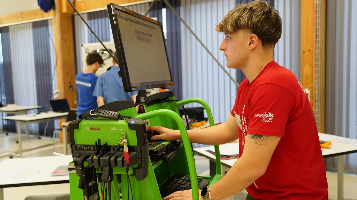 La ricompensa per tutti gli sforzi, i preparativi e la tensione non potrebbe essere più allettante: l'EuroCup non è solo un evento in cui i talenti di diversi paesi si allenano insieme in modo particolarmente intenso in condizioni di competizione internazionale, ma serve anche alla Svizzera come qualificazione per l'ambito biglietto per i campionati mondiali delle professioni WorldSkills, che questa volta si terranno dal 22 al 27 settembre 2026 a Shanghai, in Cina. Dieci meccatronici d'automobili (otto specializzati in autovetture, due in veicoli commerciali) provenienti da tre paesi si sono sfidati il 13 dicembre per aggiudicarsi il titolo di miglior meccatronico d'automobili, specializzato in autovetture.