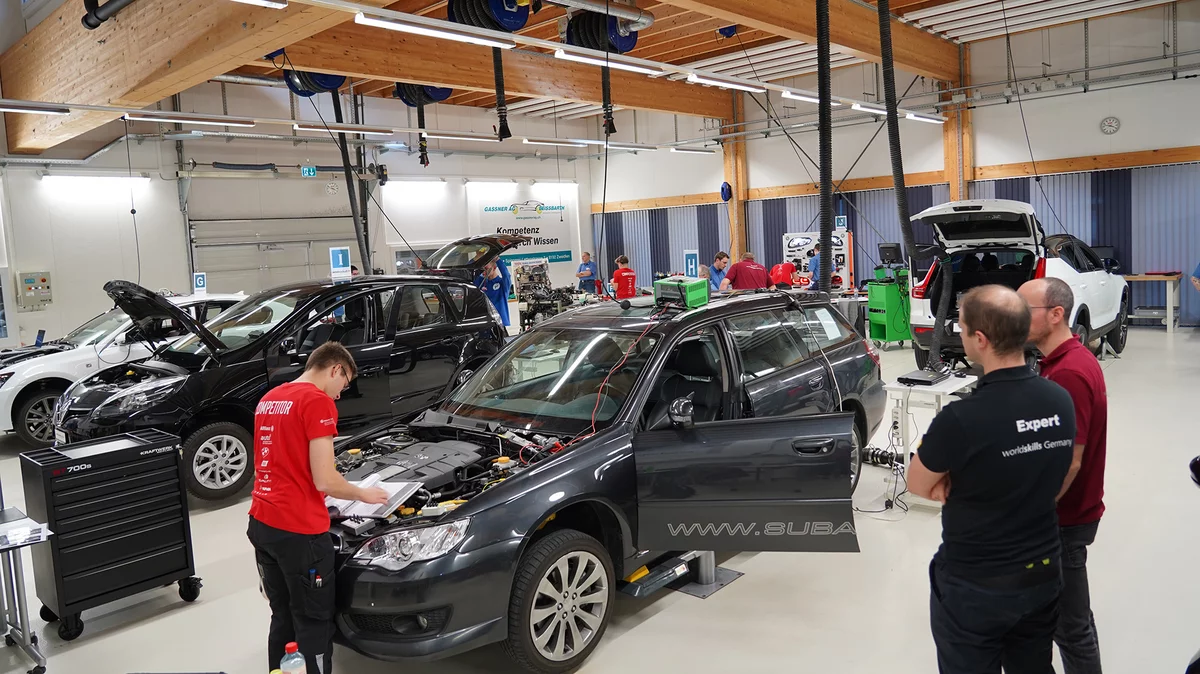 Si parte: in due capannoni, dieci prove mettono alla prova le capacità diagnostiche. Su un veicolo si deve individuare un guasto al sistema di sospensioni pneumatiche («compressore surriscaldato»), su un altro un malfunzionamento del cambio automatico («problema nel passaggio alla marcia superiore»). Le prove sono state ideate dal team di Markus Schwab (responsabile della tecnica automobilistica e delle prove presso l'UPSA) in modo tale che sia quasi impossibile completarle tutte: ogni prova dura 35 minuti, il che corrisponde a mezza giornata o a una giornata intera di lavoro in officina, al fine di individuare i migliori tra i migliori. I volti dei candidati parlano da soli: a volte sicurezza di sé, a volte pura disperazione. Come esperti sono presenti 17 specialisti dei tre paesi, tra cui campioni svizzeri di SwissSkills, EuroSkills e WorldSkills come Sophie Schumacher (oro WorldSkills 2024, specializzazione NFZ).