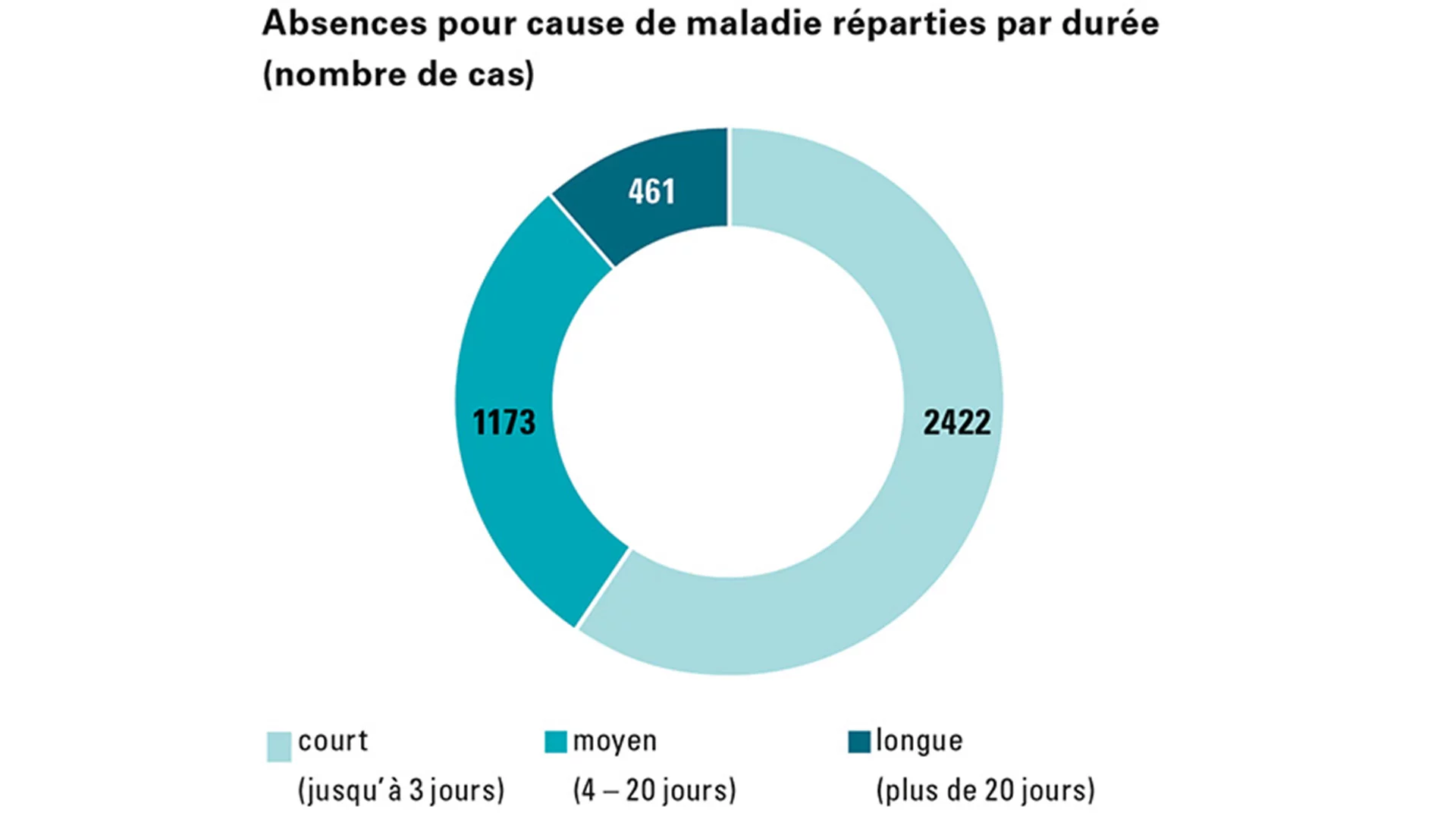 Un altro risultato centrale del sondaggio riguarda le assenze per malattia. È preoccupante che nelle aziende siano stati contati in totale circa 29'000 giorni di malattia. È particolarmente evidente che il numero di assenze di oltre 20 giorni è in costante aumento, il che indica una crescente gravità dei casi di malattia.