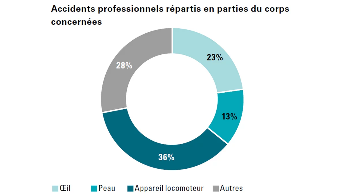 Una parte essenziale della gestione della salute in azienda è il monitoraggio e la riduzione degli infortuni sul lavoro. Gli infortuni sul lavoro sono frequenti soprattutto nel settore automobilistico e in particolare nelle officine. Sono soprattutto alcune parti del corpo a essere colpite: ad esempio la pelle (come abrasioni o tagli) e l'apparato locomotore (sforzi ripetuti come sollevare e chinarsi). Il sondaggio fornisce cifre che dimostrano che, nonostante una solida prevenzione degli infortuni, un numero considerevole di infortuni continua a causare assenze, il che dovrebbe quindi porre maggiormente l'attenzione sulla gestione della salute in azienda.